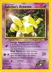 Sabrina's Drowzee (Japanese: ナツメのスリープ Natsume's Sleepe) is a Psychic-type Basic Pokémon card. It is part of the Gym Challenge expansion.