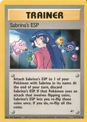 Sabrina's ESP (Japanese: ナツメのESP Natsume's ESP) is a Trainer card. It was first released as part of the Gym Heroes expansion.