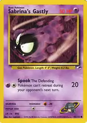 Sabrina's Gastly (Japanese: ナツメのゴース Natsume's Ghos) is a Psychic-type Basic Pokémon card. It is part of the Gym Heroes expansion.