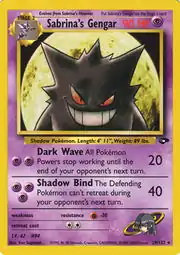 Sabrina's Gengar (Japanese: ナツメのゲンガー Natsume's Gangar) is a Psychic-type Stage 2 Pokémon card. It is part of the Gym Challenge expansion.