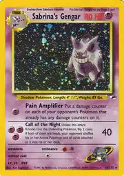 Sabrina's Gengar (Japanese: ナツメのゲンガー Natsume's Gangar) is a Psychic-type Stage 2 Pokémon card. It is part of the Gym Heroes expansion.