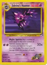Sabrina's Haunter (Japanese: ナツメのゴースト Natsume's Ghost) is a Psychic-type Stage 1 Pokémon card. It is part of the Gym Heroes expansion.
