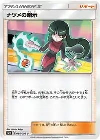 Sabrina's Suggestion (Japanese: ナツメの暗示 Natsume's Hint) is a Supporter card. It was first released as part of the Team Up expansion.