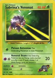 Sabrina's Venonat (Japanese: ナツメのコンパン Natsume's Kongpang) is a Grass-type Basic Pokémon card. It is part of the Gym Heroes expansion.