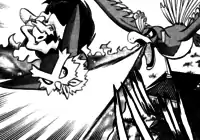 Ho-Oh releases a gold-rose-colored flame from its beak at the opponent, or Ho-Oh releases orange and multicolored flames from its wings at the opponent. | ||