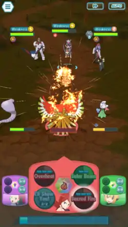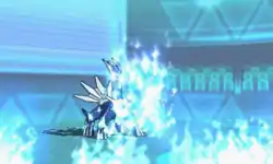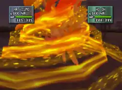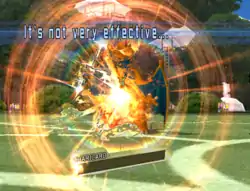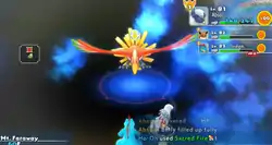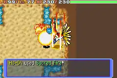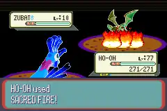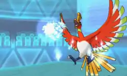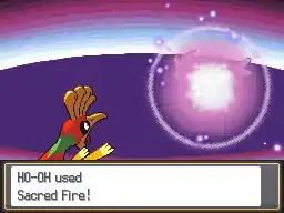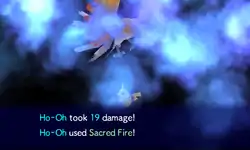 Ho-Oh releases a beam with a fiery aura around it from its beak at the opponent, or Ho-Oh fires a blast of fire from its mouth at the opponent. | ||