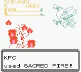 Sacred Fire can also be used as part of a Pokémon Contest combination, with the user gaining extra four appeal points if the move Sunny Day was used in the prior turn.