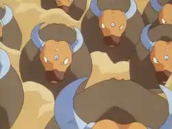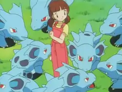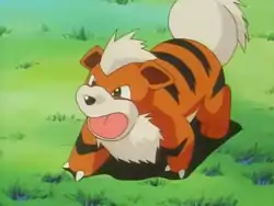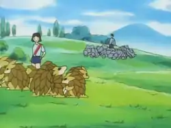 Ash and his friends arrived on the ranch in The Flame Pokémon-athon!. Thinking they had reached the Safari Zone, Ash attempted to catch a Tauros. He was stopped by a Growlithe that was revealed to be owned by Lara Laramie, part of the Laramie family and in charge of patrolling the farm. After making clear they had no intention to do any harm, Lara introduced herself to the group. She invited them to a party at Laramie Village held that night and also to watch the Big P Pokémon Race held the day after.