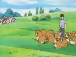 Closer to the Safari Zone are dense forests and open plains filled with many rare wild Pokémon, which are patrolled by Ranger Jenny in her jeep. In The Kangaskhan Kid, Ash and his friends helped Tommy to reunite with his parents after they lost him in Safari Land five years earlier. After defeating Team Rocket, Tommy's parents decided to live with Tommy's adopted family, a herd of Kangaskhan.