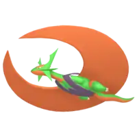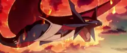 The stress of Salamence's vaunted wings becoming misshapen in its Mega Evolution aggravates it to the point of rampaging. This fuels its already brutal nature and makes it likely to turn against the Trainer who raised it. Because of this, Mega Salamence is feared as "the blood-soaked crescent". Anything and anyone in Salamence's path gets sliced in two by its bladelike wings, posing no interruption to its flight.