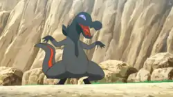 A Salandit appeared in Dewpider Ascending!, where it attempted to attack a Dewpider with Ember, only for its mouth to get stuck.