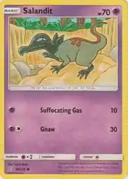 Salandit (Japanese: ヤトウモリ Yatoumori) is a Psychic-type Basic Pokémon card. It is part of the Unified Minds expansion.