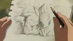 Later, Ash expressed his sadness to Professor Oak about Sam leaving, to which Professor Oak assured Ash that he and Sam will always be friends. Misty wonders how Professor Oak knew Sam's name when they hadn't mentioned it to him. Professor Oak looks at a faded version of Sam's sketchbook, but does not reveal that he is Sam to Ash and his friends.
