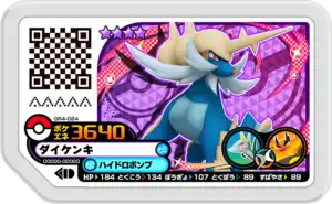 Samurott (Japanese: ダイケンキ Daikenki) is a Grade 4 Pokémon Ga-Olé disk. It is part of the fourth Grand Rush set.