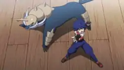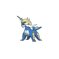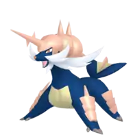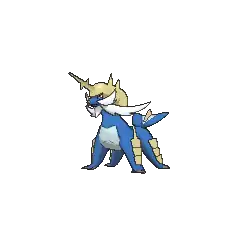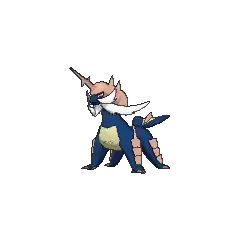 When in battle, Samurott can stand on its hind legs and use one of its blades as a sword to fight. In the time it takes a foe to blink, it can draw and sheathe the seamitars attached to its front legs; one swing can fell an opponent. It can silence foes with a glare or a howl.