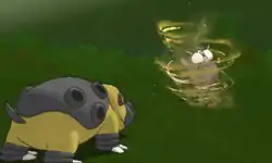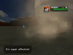 Hippowdon releases sand out of the holes on its back and digs into the ground. | ||