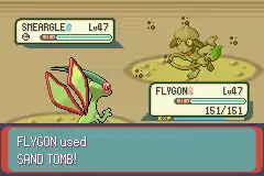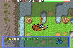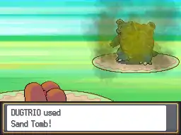 Sand Tomb's power and accuracy were increased to 35 and 85 respectively, and now lasts four to five turns. If a Binding Band is held by the user, the damage done at the end of each turn will increase from 1/16 of the target's maximum HP to 1/8. If the user of Sand Tomb is holding a Grip Claw, the duration will be 7 turns. The text was also altered to, "<Pokémon> became trapped by Sand Tomb!"