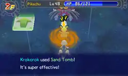 Sand Tomb can also be used as part of a Pokémon Contest combination, with the user gaining three extra appeal points if move Sandstorm was used in the prior turn.