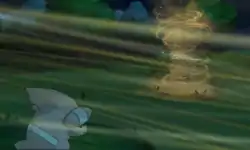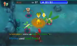Vibrava's eyes glow light blue and the opponent's legs becomes surrounded by a sand tornado. When the tornado fades, the opponent's legs become trapped in sand. | ||