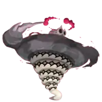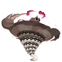 When Gigantamaxed, the sand overflows from the pouch and forms a ring around Sandaconda's neck, with total amount of sand swirling around its body now reaching 1,000,000 tons. Gigantamax Sandaconda resembles an enormous tornado, and it attacks by spinning its body at high speeds, causing the sand to move at incredible speeds and inflicting massive damage to anything that touches it. It is powerful enough to pulverize a skyscraper in this way.[2]