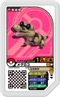 Sandile (Japanese: メグロコ Meguroco) is a Grade 1 Pokémon Ga-Olé disk. It is part of the fourth Dash set.