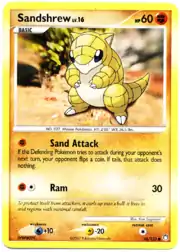 Sand-Attack is a move in the Pokémon games that Sandshrew can learn. This card's Pokédex entry comes from Pokémon Diamond and Pearl.