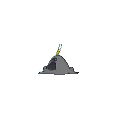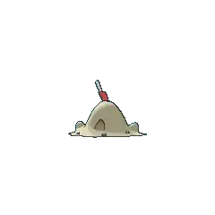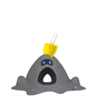 Sandygast resembles a small heap of sand, yet to be shaped into a sand castle - sporting a tunnel-like mouth and a shovel stuck into its head. Its Shiny color variation may be based on black sand.