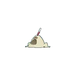 Sandygast is born from grudges that seep into the sand, such as from Pokémon that suffer defeat in battle or the deceased. It can suck the life force of people or Pokémon through its mouth. Apparently, in the Alola region, sticking a hand into Sandygast's mouth is a way of proving one's courage. A person who grabs Sandygast's shovel or puts a hand in its mouth falls under its control. It uses this power to make children add sand to its body so it can become bigger. Sandaygast cares a lot about the shovel on its head. A Sandygast that loses its shovel may replace it with something like a branch or a flag, but it is said to keep searching for its lost shovel.[1]It is known to inhabit beaches.