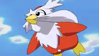 | Delibird was first seen flying in the sky above a big city. Down below, Ash's Pikachu and its friends were bowling with giant snowballs. Ash's Totodile accidentally shot a snowball with Water Gun and it launched into the sky, hitting Delibird and making it fall. Not far away, Meowth and Wobbuffet were walking up a staircase outside a building. Suddenly, Delibird fell from the sky, landing on Meowth and Wobbuffet and waking up a nearby Skarmory. The angry Skarmory blew Delibird away into the sky, knocking it out and causing it to drop all the presents it was carrying. Pikachu and friends quickly found Delibird and Ash's Cyndaquil woke it up by tickling it.