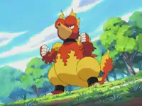 | Magmar is Satchel's only known and most powerful Pokémon. It first appeared as a Magby in a battle against Ash and his Cyndaquil. Both of them had strong Flamethrowers and were equal in terms of strength, but Magby's speed was too much for Cyndaquil and it was defeated by a Dynamic Punch. Later, Magby and a load of other Pokémon were captured by Team Rocket. Larvitar was able to free Ash, get onto the truck, and tell Magby and Cyndaquil to burn a hole in the glass, which they finally did and all of the Pokémon escaped. Magby tried to send Team Rocket blasting off, but it was not powerful enough. Just then, it suddenly evolved into Magmar and successfully fended off Team Rocket before they were blasted off by Cyndaquil.