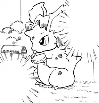 In Cerulean City, Pikachu participates in its first Gym battle: it has trouble swimming and falls into the water. Although Satoshi does not defeat Misty, the Gym Leader, Pikachu wins Satoshi his Cascade Badge by saving Misty from a Team Rocket Grunt's Gyarados. Pikachu voluntarily evolves into Raichu with a Thunderstone before battling the Elite Four. At the Indigo Plateau, it is seen defeating Lorelei's Cloyster. Raichu's known moves are Thunderbolt and Thunder. | ||