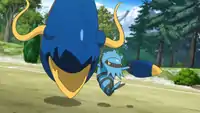 In A Full-Strength Battle Surprise!, it was revealed that Honedge had evolved into Doublade. It battled against Noivern, but despite having the type advantage, lost. In Valuable Experience for All!, in the Lumiose Conference, it was revealed that Doublade had evolved into Aegislash. It battled against Tierno's Ludicolo and won, but was then defeated by Raichu. It was later used in Analysis Versus Passion! and A Riveting Rivalry!, where it battled against Pikachu in the semi-finals and was once again defeated by him. It appeared again in Till We Compete Again!, during a flashback. Aegislash's known moves are Fury Cutter, Iron Defense, Slash, Night Slash, Swords Dance, King's Shield, and Sacred Sword, and its Ability is Stance Change. | ||