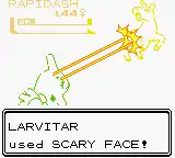 Larvitar stares at the opponent in a scary-looking way. | ||