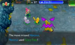 In Red Rescue Team and Blue Rescue Team, and Explorers of Time, Darkness and Sky, Scary Face is a move with 14PP and 70% accuracy. The user target enemy in front, lowering its Movement Speed by one level. This move is affected by Magic Coat and Taunt.