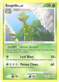 Sceptile (Japanese: ジュカイン Jukain) is a Grass-type Stage 2 Pokémon card. It is part of the Arceus expansion.