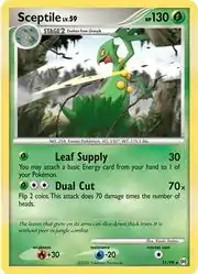 Sceptile (Japanese: ジュカイン Jukain) is a Grass-type Stage 2 Pokémon card. It is part of the Arceus expansion.