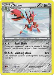 Scizor (Japanese: ハッサム Hassam) is a Metal-type Stage 1 Pokémon card. It is part of the Boundaries Crossed expansion.