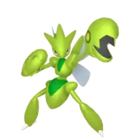 It evolves from Scyther when traded while holding a Metal Coat (from Generations II to VII, Sword and Shield, and Brilliant Diamond and Shining Pearl) or when exposed to a Metal Coat (Pokémon Legends: Arceus). It is one of Scyther's final forms, the other being Kleavor.