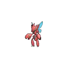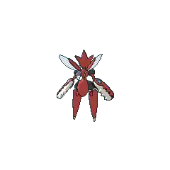 This evolved form of Scyther has arms ending in large pincers with distinctive eye-spot markings. It's unable to fly very far with its wings, but it can affect its body temperature by flapping them at high speeds. Its sleek look has made Scizor quite popular among collectors.