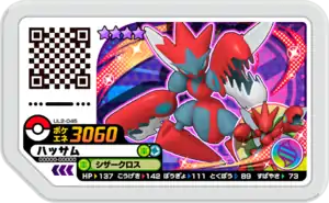 Scizor (Japanese: ハッサム Hassam) is a Grade 4 Pokémon Ga-Olé disk. It is part of the second Ultra Legend set.