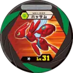Scizor (Japanese: ハッサム Hassam) is a Pokémon Battrio puck. It is part of the Black Thunder - White Fire expansion.