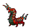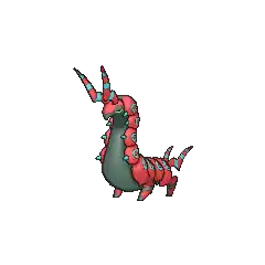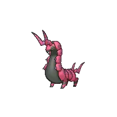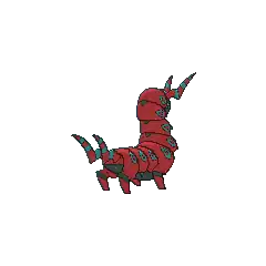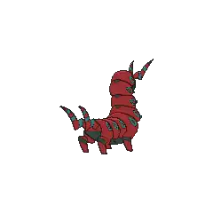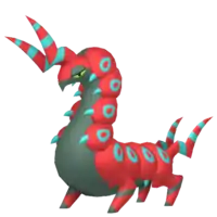 Scolipede lives in lush forests. It is very aggressive and will not give up until victorious. This Pokémon chases down enemies with great speed and then attacks relentlessly with its horns until it prevails. It latches onto the prey with the claw's toxic spikes and then slams it into the ground for the deadly poison effect. Centiskorch is the natural predator or prey of Scolipede, depending on who wins the territorial fight.