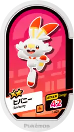 Scorbunny (Japanese: ヒバニー Hibanny) is a Grade 2 Pokémon Mezastar tag. It is part of the first set.