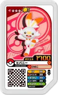 Scorbunny (Japanese: ヒバニー Hibanny) is a Grade 1 Pokémon Ga-Olé disk. It is part of the fifth Grand Rush set.