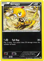 Scraggy (Japanese: ズルッグ Zuruggu) is a Darkness-type Basic Pokémon card. It is part of the Flashfire expansion.