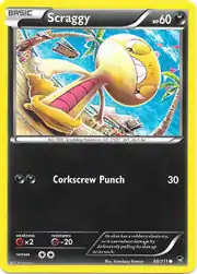 Scraggy (Japanese: ズルッグ Zuruggu) is a Darkness-type Basic Pokémon card. It was first released as part of the Furious Fists expansion.