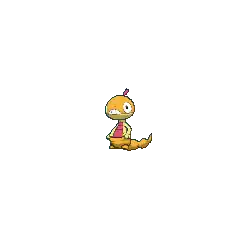 This pelt is rubbery and can be raised to its neck to reduce the damage it takes from attacks. Scraggy is easily engaged in battle, as it will attack anyone that so much as meets its gaze with a headbutt from its thick cranium. They are known to take pride in their sturdy skulls, causing them to suddenly headbutt everything. However, the weight of its skull makes it hard for Scraggy to balance itself. Scraggy travel in small groups, walking around lazily. Scraggy is said to evolve into Scrafty once its skin is completely stretched out.