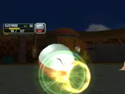 Voltorb's body glows blue and it releases sound waves from its body that distort the air around it. | ||