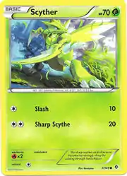 Slash is a move in the Pokémon games that Scyther can learn. This card's Pokédex entry comes from Pokémon Black 2 and White 2.