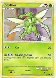 Scyther (Japanese: ストライク Strike) is a Grass-type Basic Pokémon card. It is part of the Undaunted expansion.